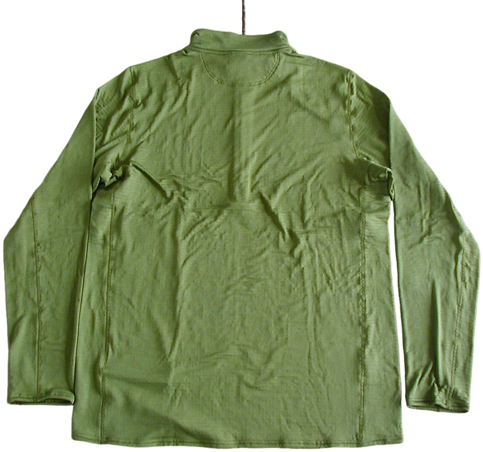 レイヤリングしやすい滑らかな表面を備えたポーラテック・パワー・グリッド素材。ハイキュ・ピュア防臭加工済み。素肌に触れる面はオープングリッド構造により優れた保温性と通気性、吸湿発散性を提供