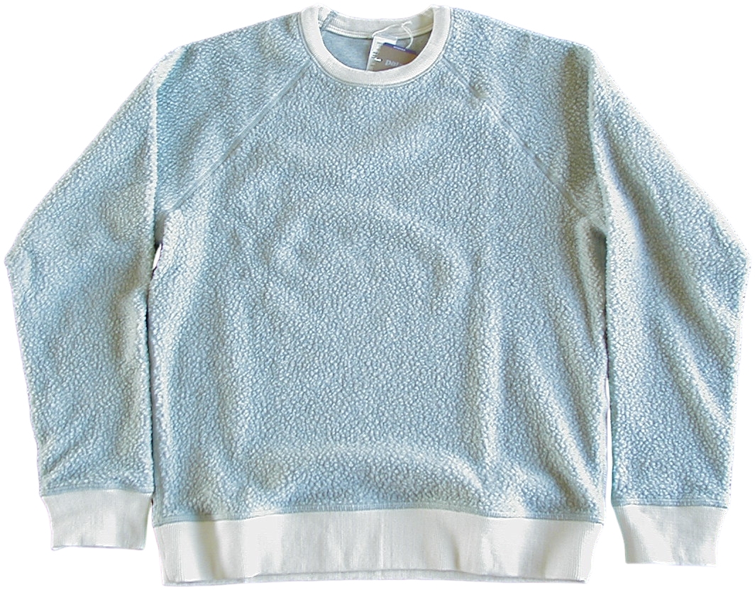 □クラシックなクルーネックのシルエット。ハイパイル・シアーリング面とソフトなジャージーニット面を備えたリバーシブルのデザイン